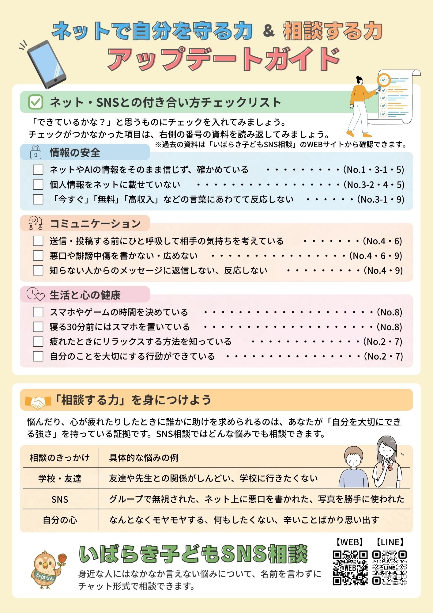 これまで紹介してきたネットの使い方や相談する力をの総集編です。チェックリストを使って「今の自分はどうかな?」とぜひ一度確認してみてください。チェックがつかなかったところはバックナンバーから振り返りをしてみましょう。